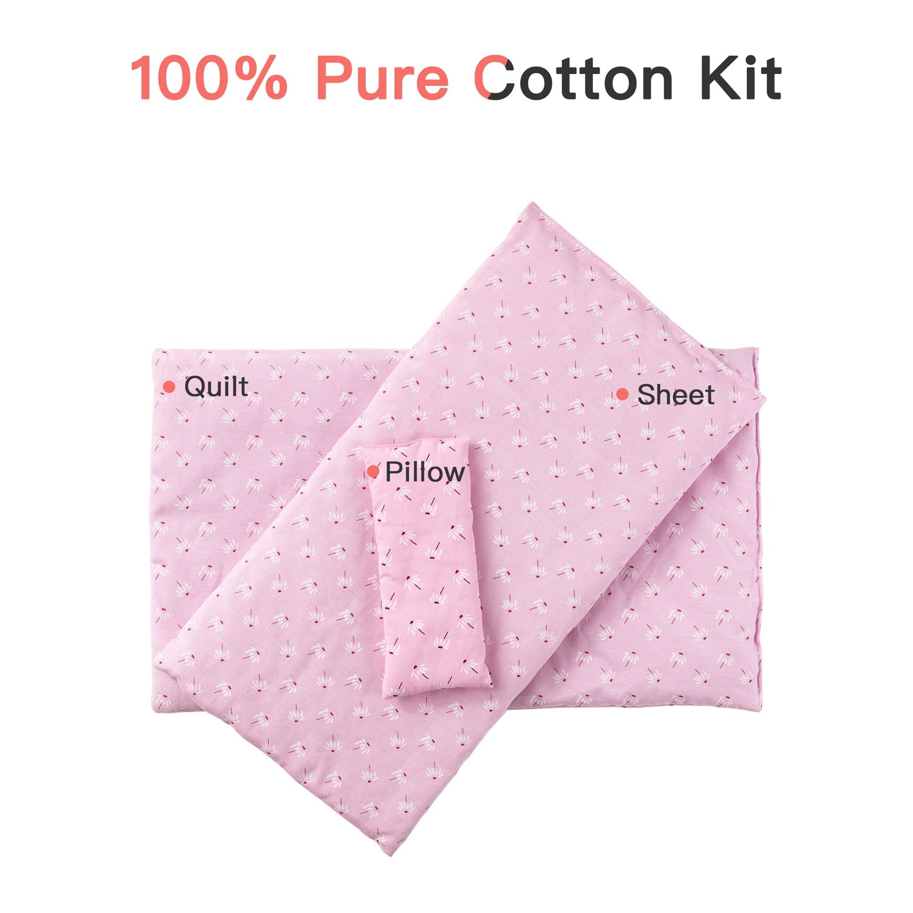 • Crib Bed for 18 inches Doll: The assemble size of this doll bed is 53.5 x 34 x 32 cm ( 21.1 x 13.4 x 12.6 inch), suitable for 12 inch to 18 inch dolls. In the cot bed, there are pillow, sheet and quilt. The doll sleep with the quilt covering on the bed.